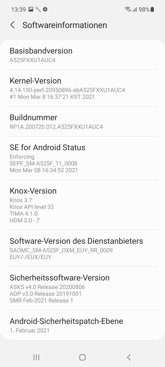 | 83 % v7 (old) | 04/2021 | Samsung Galaxy A52 5G SD 750G 5G, Adreno 619 | 189 g | 128 GB UFS 2.1 Flash | 6.50" | 2400x1080 | |
