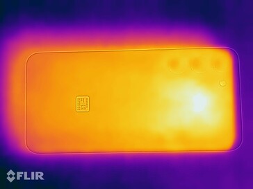 En funcionamiento, el Galaxy S23+ se mantiene frío. Incluso tras una hora de pruebas de estrés, sólo pudimos conseguir una temperatura superficial máxima de 32,7 °C del dispositivo. Sin embargo, para lograr esto, el rendimiento interno tiene que ser estrangulado severamente.