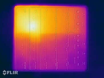 (-) La temperatura máxima en la parte superior es de 48.1 °C / 119 F, frente a la media de 35.2 °C / 95 F, que oscila entre 21.9 y 247 °C para la clase Smartphone.