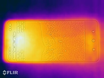 Las temperaturas de la superficie de la carcasa no son problemáticas ni en reposo ni bajo carga. Con un máximo de 35 °C, el calor residual medido no es demasiado crítico a la vista de la estabilidad del rendimiento del SoC. Lo evaluamos con la prueba de estrés del GFX benchmark, que repitió el respectivo escenario OpenGL ES 3.1 treinta veces seguidas y registró las tasas de frames. Después, el smartphone Xiaomi se sometió a las pruebas de estrés de 3DMark