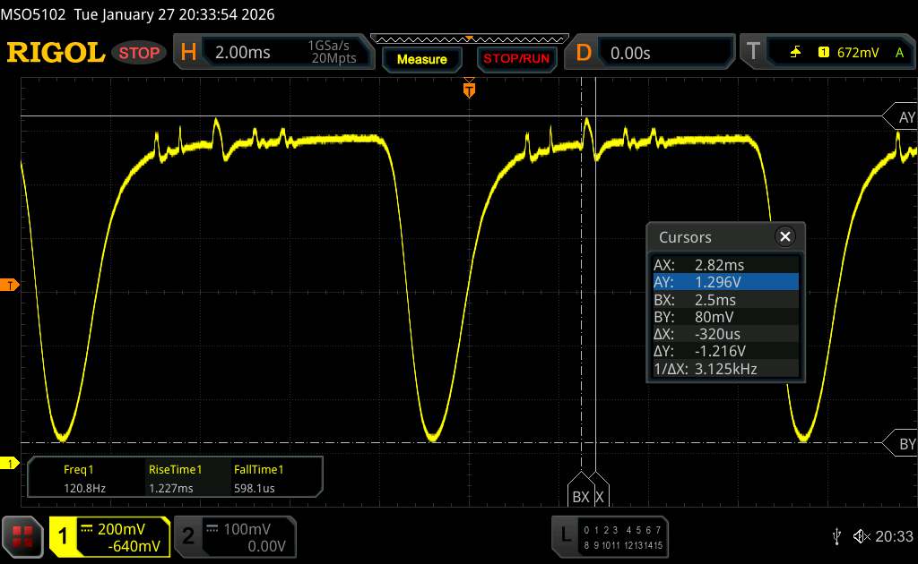 | Parpadeo de Pantalla / PWM detectado | 120 Hz Amplitude: 13.7 % Secondary Frequency: 3125 Hz | ||