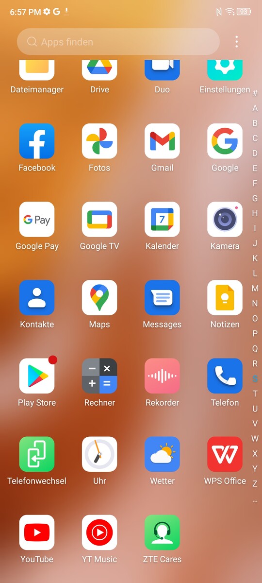 Además de las aplicaciones de Google y algunas herramientas de ZTE, sólo hay unas pocas aplicaciones de terceros preinstaladas en el dispositivo, como el navegador Ume, Facebook, WPS Office y Booking.com. Pero todas ellas se pueden eliminar. Después de la configuración inicial, alrededor de 109 GB de los 128 GB eran utilizables en nuestra unidad de prueba.