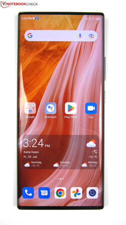 La pantalla curva de 6,8 pulgadas del Axon 40 Ultra tiene una resolución de 2480 x 1116, lo que equivale a una alta densidad de píxeles de 400 PPI. La pantalla 20:9 con HDR funciona a 120 Hz y tiene una iluminación muy uniforme. Todo el panel tiene un brillo máximo medio de 683 cd/m².