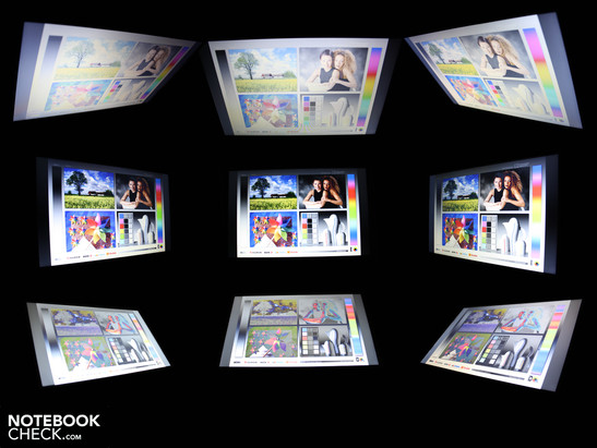 Cualquiera mirando a la pantalla desde un lateral o desde arriba verá colores muy invertidos y una imagen oscurecida. Horizontalmente, los colores son claros solo hasta un 45º. Tras esto, se invierten de forma notable y el brillo disminuye. Esperabamos un poco más de la gama 'elite' de portatiles de negocios de HP. El EliteBook no puede ciertamente competir con los colores estables de un monitor de escritorio.