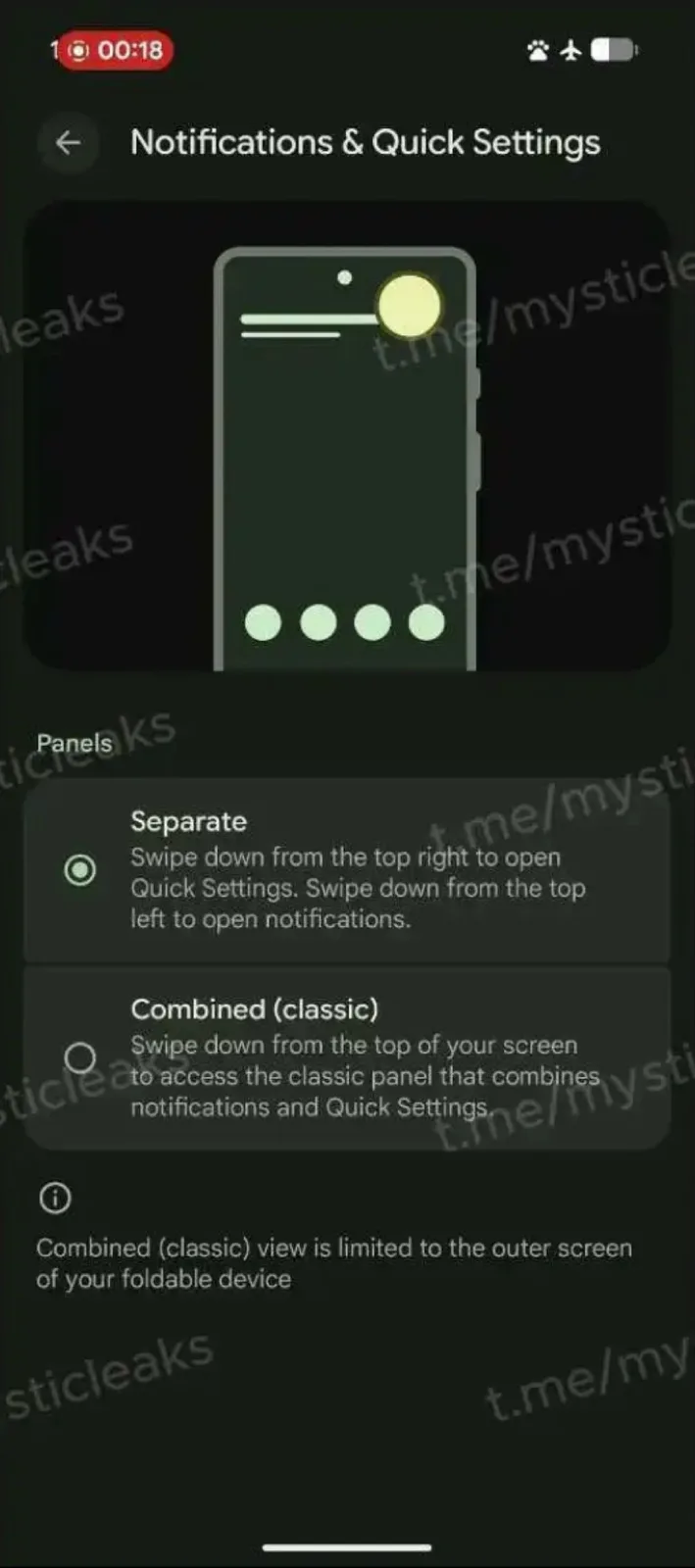 Según estas capturas de pantalla, Android 17 sólo mostrará los ajustes rápidos por defecto al deslizar el dedo hacia abajo desde la esquina superior derecha de la pantalla. En cambio, al deslizar el dedo hacia abajo desde la esquina superior izquierda de la pantalla, se mostrarán las notificaciones. Esto ya resulta familiar desde el iPhone 17 deApple . Los usuarios a los que no les guste este cambio pueden volver a la conocida interfaz de usuario Android en los ajustes del sistema, que combina ajustes rápidos y notificaciones en una sola pantalla