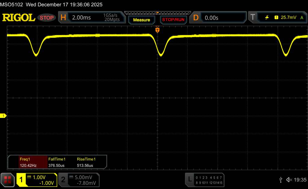 | Parpadeo de Pantalla / PWM detectado | 561.3 Hz Amplitude: 19 % | ||