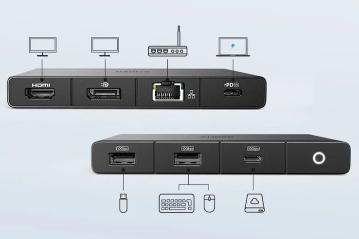 Anker ha lanzado el Hub USB-C 556 (8 en 1, USB4) en el Reino Unido y la UE. Los ocho puertos del dispositivo incluyen una entrada USB-C PD de 100 W y un puerto USB4 de subida con un ancho de banda de 40 Gbps para conectarse al portátil, lo que proporciona una carga de paso de 85 W. Un USB-C 3.2 Gen 2 tiene una velocidad de transferencia de 10 Gbps, y dos USB-A 3.2 Gen 2 son capaces de 10 Gbps.