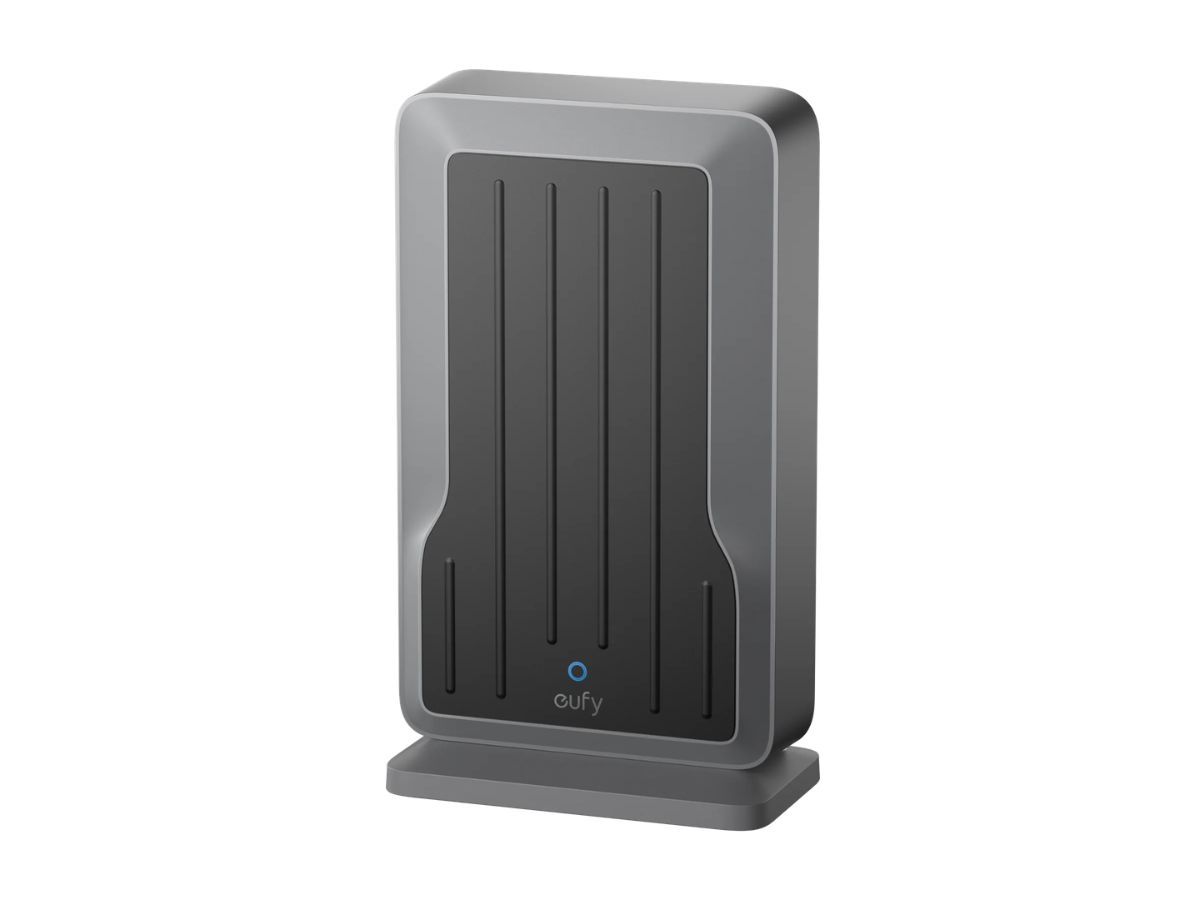 El módulo Wi-Fi de Eufy puede colocarse sobre un escritorio o montarse en la pared. El accesorio de la submarca Anker también se conoce como Módulo WLAN eufy, y tiene el número de modelo T8709. Tiene un acabado gris oscuro metalizado, y parece medir 3,18 x 1,73 x 5,53 pulgadas (~80,8 x 43,9 x 140,5 mm).