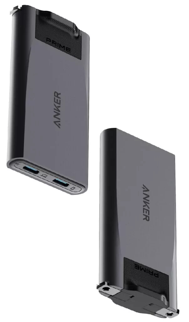 El medio japonés onesuite indica que, con un grosor de 12 mm (~0,5 pulgadas), será el cargador rápido USB-C más fino de la marca. También sugiere que el accesorio tiene aproximadamente el mismo tamaño que una tarjeta de crédito, mide 8,6 x 4,5 x 1,2 cm (~3,4 x 1,8 x 0,5 pulgadas) y pesa 80 g (~0,2 libras). El diseño 'Estructura de enchufe dinámico' significa que las clavijas se pliegan horizontalmente; los modelos más antiguos con clavijas plegables como el cargador Prime (100W, 3 puertos, GaN) utilizan un mecanismo vertical. Además, el elemento central que sujeta las clavijas puede girar 90° hacia delante y hacia atrás.