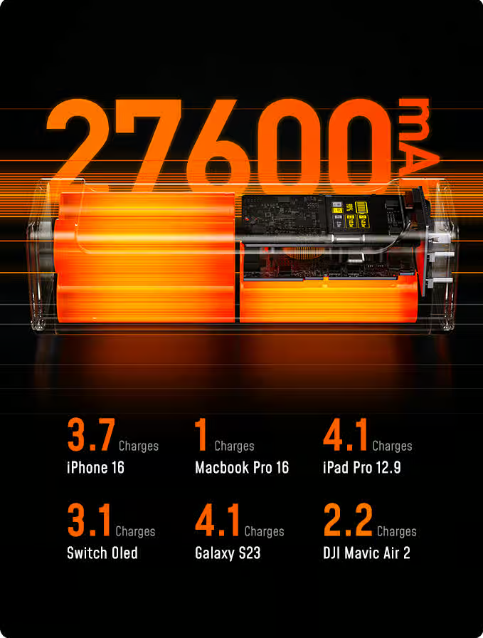 El accesorio tiene muchas similitudes con el Anker Prime 27.650mAh Power Bank (250W). La Starship ofrece dos puertos USB-C con una salida de hasta 140W, igual que el modelo de Anker. El puerto USB-A es menos potente, ya que ofrece 22,5W en lugar de 60W. Además, la salida máxima combinada es ligeramente inferior; el dispositivo de Aohi ofrece 240W, 140W y 100W a través de los dos puertos USB-C. Mientras tanto, el producto de Anker tiene una salida total de 250W, 140W y 92W a través de USB-C y 18W a través de USB-A. El Aohi Starship tiene una capacidad de 27.600 mAh, similar a la del accesorio Prime, aunque sólo admite una entrada de hasta 140W, inferior a los 170W máximos de su competidor.