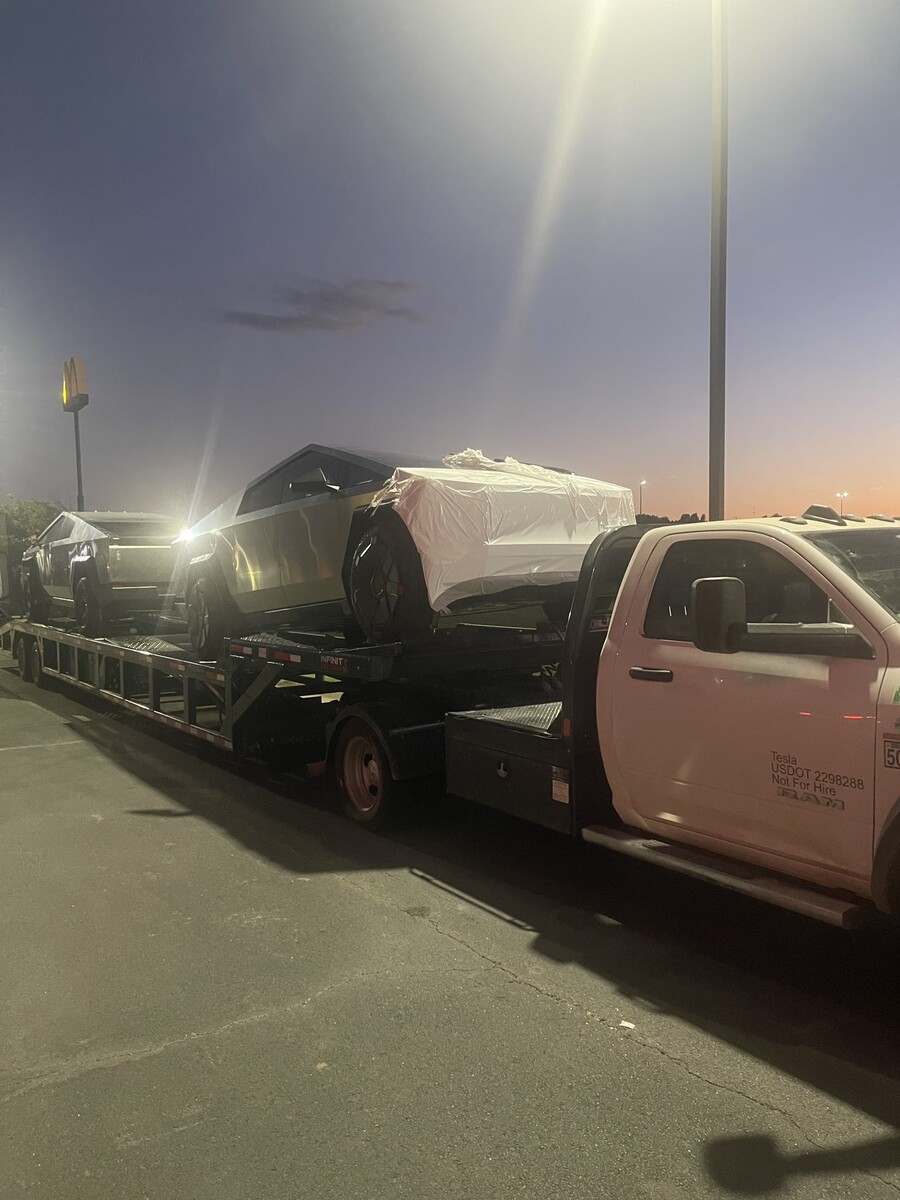 Un Cybertruck, en particular, está marcado con "630" en la ventanilla y en la cubierta delantera, similar a los coches que se someten a pruebas de choque. Además, el tren de rodaje protegido del Cybertruck ha sido arrancado desde abajo mientras estaba en el remolque.