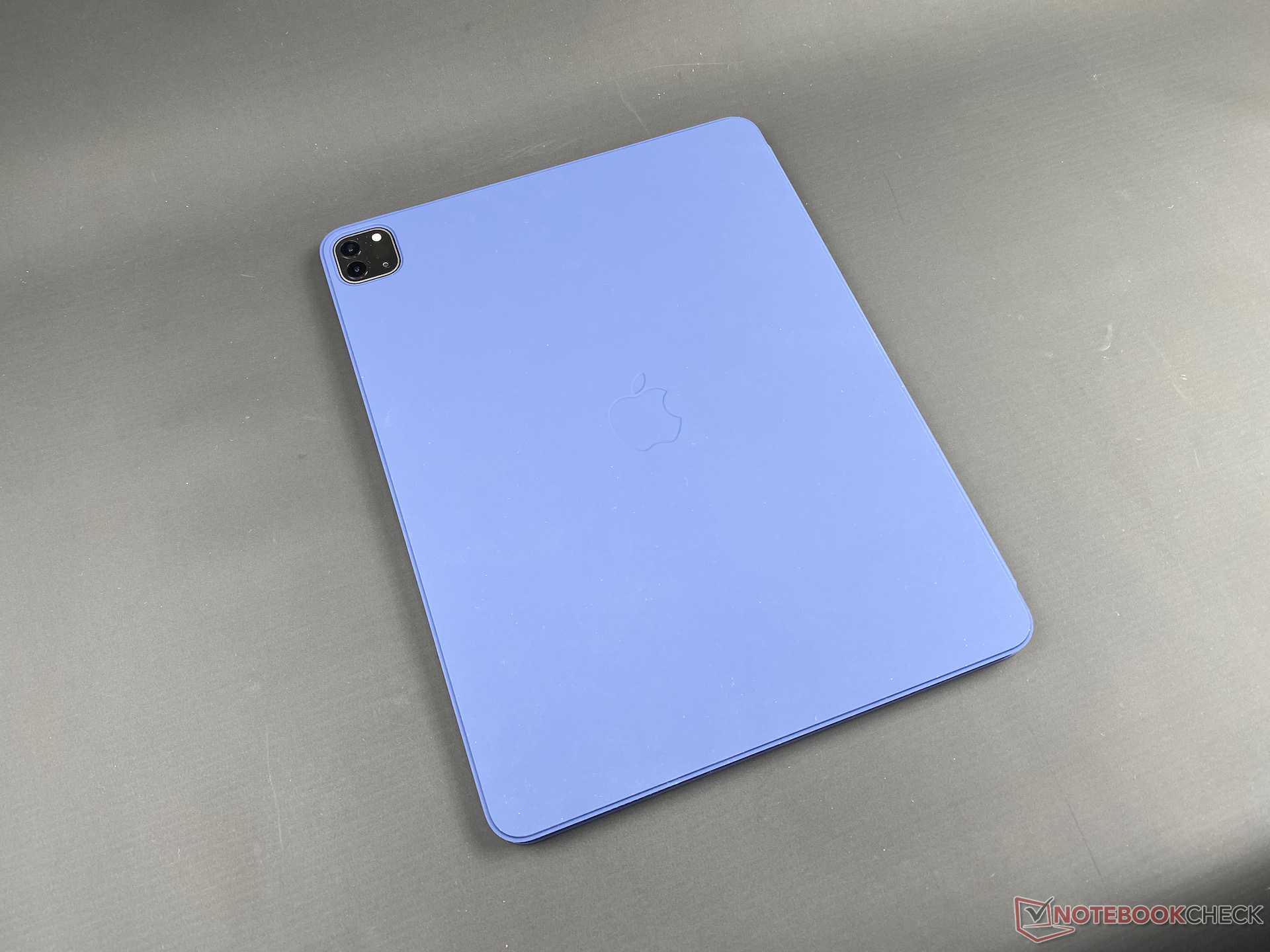 El diseño de la carcasa del iPad Pro de 12,9 pulgadas no ha cambiado respecto a su predecesor. La retroiluminación Mini LED ha hecho que la tableta sea imperceptiblemente más gruesa y pesada, pero la carcasa de aluminio estable y perfectamente procesada sigue siendo excelente. Los huecos, la háptica y la óptica son, como en el caso de Apple, impecables. Los biseles de la pantalla tampoco han cambiado y ofrecen suficiente espacio para la cámara frontal mejorada de la tableta. También se puede sostener la tableta cómodamente sin disparar accidentalmente la pantalla. Además, nuestra unidad de pruebas es rígida; su rigidez torsional es impecable