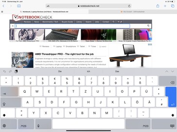 Apple protege la pantalla táctil capacitiva del iPad Pro con un vidrio no especificado que es liso, y no ofrece resistencia cuando deslizamos los dedos por él. Apple afirma que aplica un revestimiento oleofóbico sobre el vidrio también, pero la pantalla de nuestra unidad de pruebas parece rápidamente grasienta, no obstante. Sin embargo, el dispositivo interpreta nuestras entradas con precisión y rapidez. Además, el sistema se siente rápido y fluido, sobre todo por el panel de 120 Hz del dispositivo. Con la pantalla más grande, el iPad Pro de 12,9 pulgadas también tiene un teclado en pantalla más grande con una fila numérica dedicada, lo que permite escribir un poco más rápido que en el modelo de 11 pulgadas
