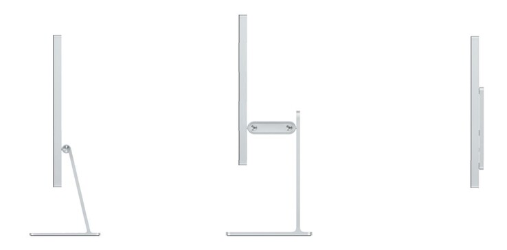 A diferencia del Pro Display XDR, el Studio Display viene con un soporte de inclinación por defecto. Sin embargo, Apple también ofrece un soporte inclinable y ajustable en altura, así como un adaptador VESA como opciones, y el comprador tiene que decidir una variante en el momento de la compra. El adaptador VESA está disponible sin coste adicional, pero el soporte ajustable en altura requiere un considerable aumento de precio de 460 euros (~480 dólares)