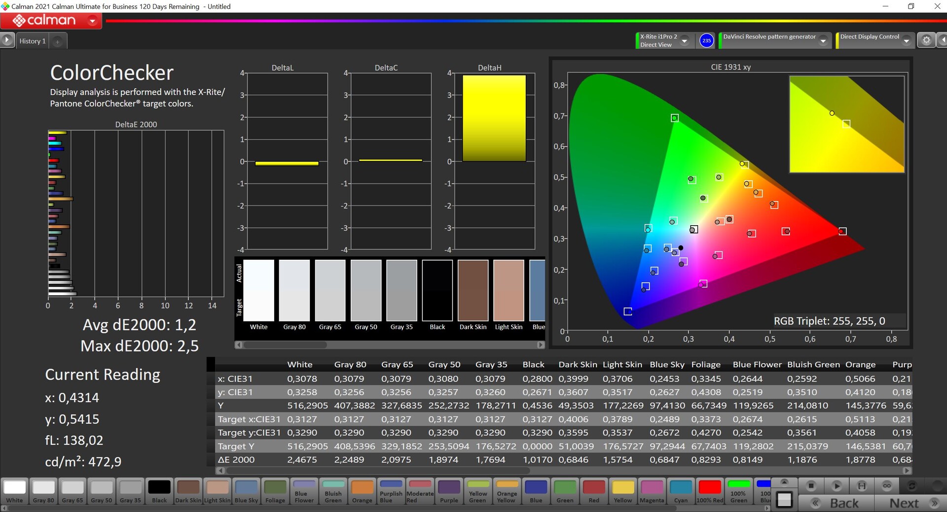 ΔE ColorChecker Calman: 1.2 | ∀{0.5-29.43 Ø4.78}