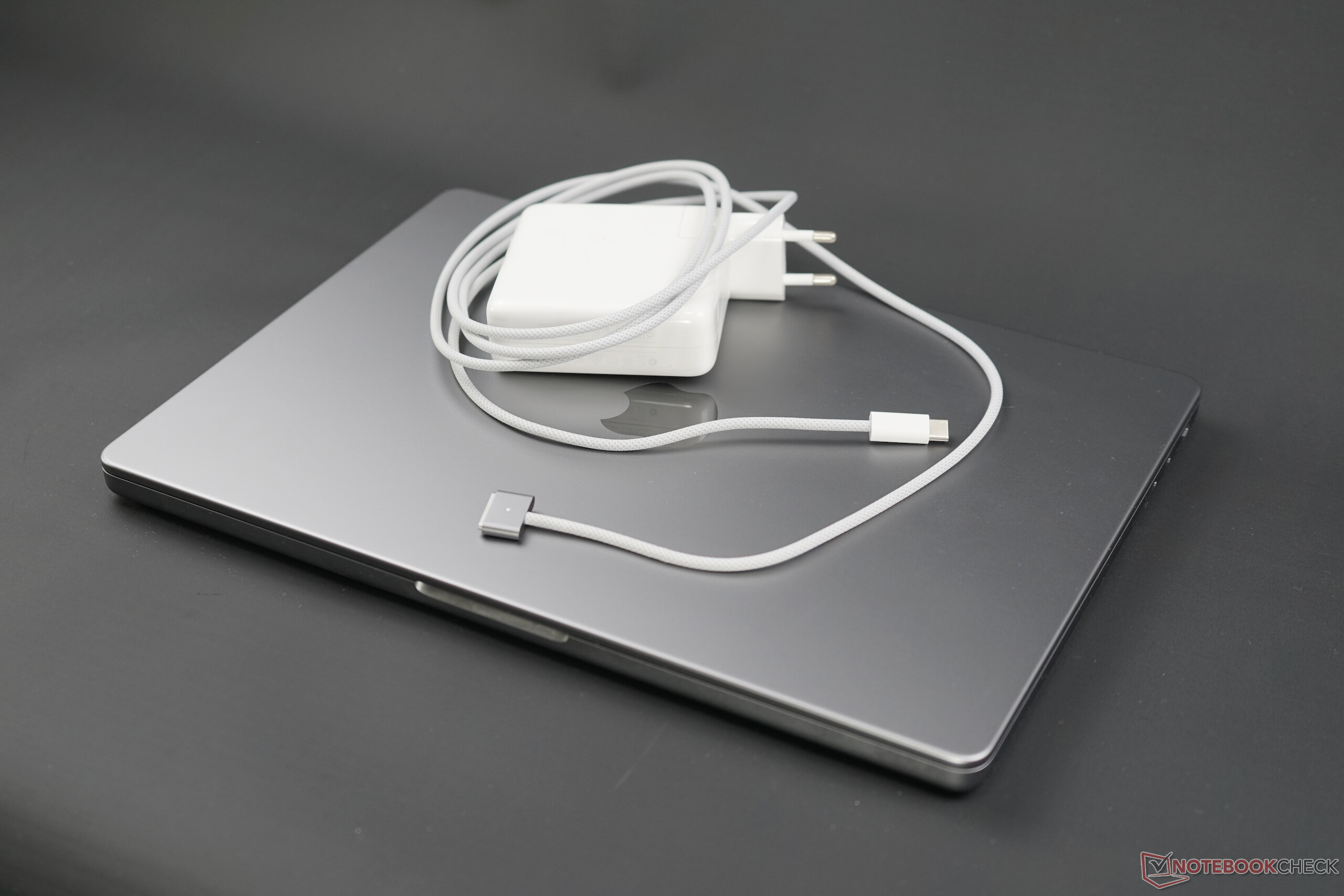 En comparación con su predecesor con el M1 ProApple se ha logrado reducir ligeramente el consumo en reposo. A la vista de la alta resolución y el brillo de 500 cd/m², el valor máximo de 11,5 vatios está muy bien. Sin embargo, medimos hasta 24 vatios en modo HDR. Bajo carga, por otro lado, no ha cambiado mucho - medimos un máximo a corto plazo de algo menos de 100 vatios, que se estabilizó rápidamente en 72 vatios. El adaptador de corriente de 96 vatios suministrado es, por tanto, de tamaño suficiente.