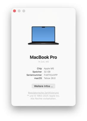 | Apple MacBook Pro 14 2025 M5 Apple M5 (10 Cores) ⎘ Apple M5 GPU ⎘ 32 GB Memoría, 1024 GB SSD | Amazon: 1. $1,999.00 Apple 2025 MacBook Pro Lapto... 2. $2,189.13 Apple 2024 MacBook Pro Lapto... 3. $19.96 BlueSwan Anti-Cracking Hard ... Precio de catálogo: 2739€ | 1.5 kg | 15.5 mm | 14.20" 3024x1964 254 PPI Mini-LED | |