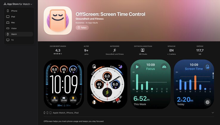 El sitio web también incluye una página de detalles para cada aplicación individual, donde los usuarios pueden ver capturas de pantalla, un tráiler en vídeo, una descripción y opiniones de los usuarios. Como antes, la App Store sigue ofreciendo información sobre las actualizaciones anteriores de las aplicaciones, el uso de datos personales y el seguimiento de las aplicaciones.