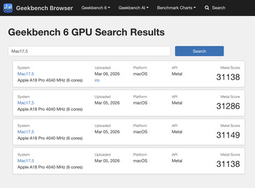 Por un lado, el rendimiento de la GPU parece estar ligeramente por delante del MacBook Air con M1 que analizamos en 2020. En aquel momento, ese dispositivo obtuvo una media de 30.112 en el punto de referencia Geekbench 6.5 Metal. Mientras tanto, el MacBook Neo obtiene 31.178 en los puntos de referencia que se han enumerado hasta ahora. Ese resultado se queda un 5,7% por debajo del iPhone 16 Pro Max a pesar de contener un 16,6% menos de núcleos de GPU.