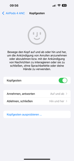 Los gestos con la cabeza permiten responder o rechazar llamadas, interactuar con las notificaciones y controlar Siri. Esta función funciona correctamente en el uso diario, pero está limitada a los dispositivos Apple. Los AirPods también admiten gestos de presión en el tallo, que funcionan a la perfección y pueden personalizarse a través de los ajustes. Sin embargo, la adición de un control de volumen multimedia habría sido una característica bienvenida.