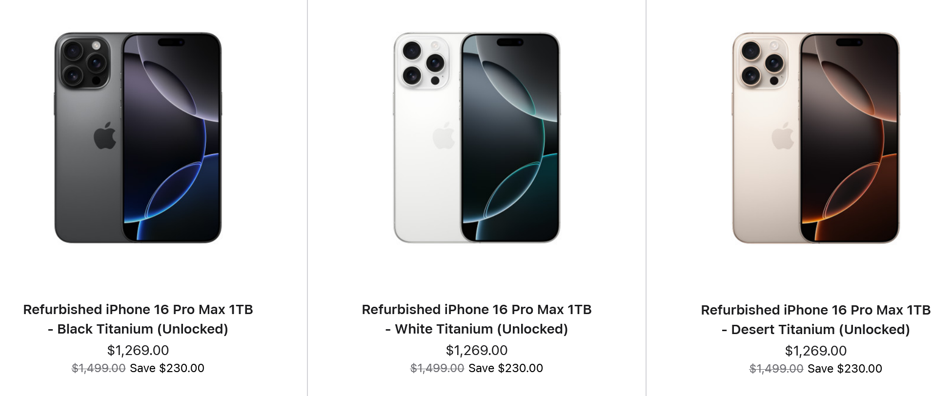 Algunos de estos modelos pueden encontrarse más baratos como dispositivos reacondicionados en otros lugares. Por ejemplo, un iPhone 16 en estado "Excelente" con 128 GB de almacenamiento puede adquirirse en Black Market por 574 dólares, 45 dólares más barato que el equivalente reacondicionado de Apple