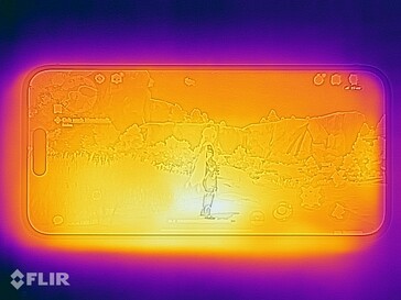 Aunque las temperaturas de la superficie del iPhone 15 Plus de Apple se calientan notablemente bajo carga, se mantienen por debajo de los 40 °C (104 °F).