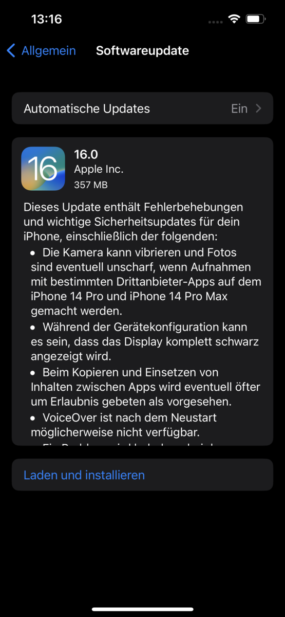 El iPhone 14 viene con iOS 16. En el momento de las pruebas, a mediados de octubre, ya ha recibido una actualización a la versión 16.0.3, que incluye una serie de correcciones de errores y parches de seguridad. Dado que Apple's última versión del sistema operativo es compatible con todos los teléfonos inteligentes desde el lanzamiento del iPhone 8 y posteriores, los posibles compradores del iPhone 14 pueden esperar actualizaciones del SO durante al menos 5 años. Sin embargo, el fabricante no lo confirma oficialmente.