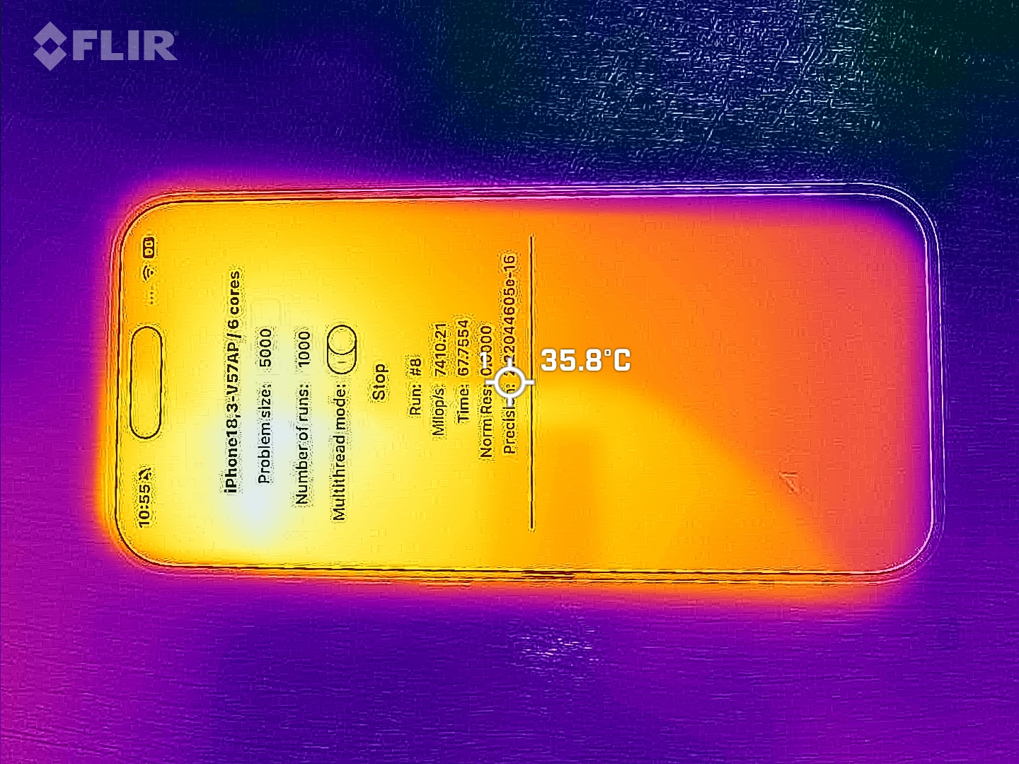 Con temperaturas superficiales de hasta 43,3 °C, el iPhone 17 se mantiene más frío bajo carga que el iPhone 16. En las pruebas de estrés 3DMark, sin embargo, el dispositivo de prueba pierde un tercio de su rendimiento máximo. También en este caso, el iPhone 16 es un poco más eficiente.