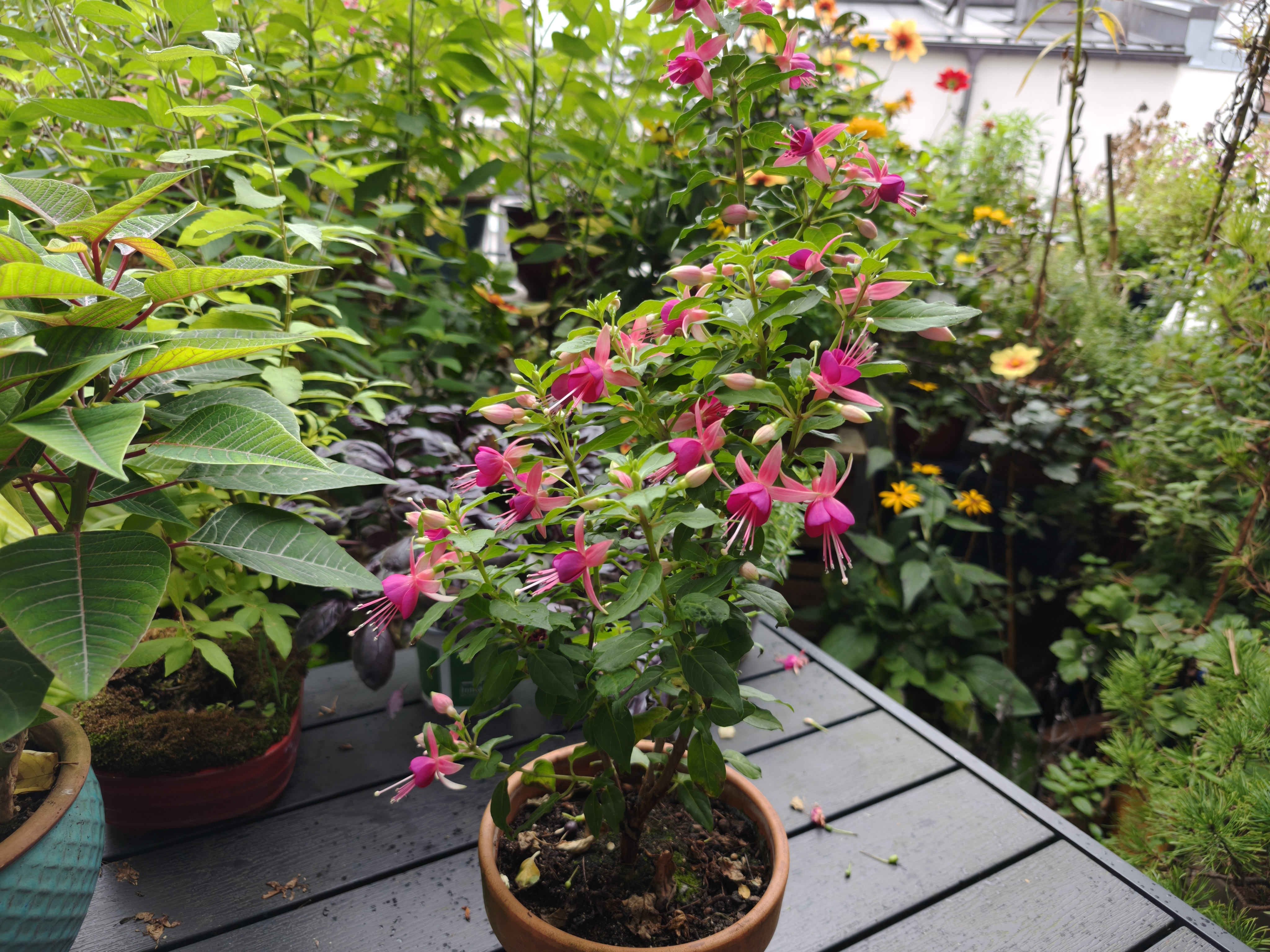 La cámara principal, que utiliza una distancia focal equivalente de pequeño formato de 26 mm, toma fotos de 24 MP de serie. Se puede cambiar a 12 MP y también puede utilizar la resolución completa de 48 MP a través del control de resolución, compensando la falta de zoom teleobjetivo mediante un zoom 2x hasta una distancia focal de 52 mm, que sólo requiere la zona interior del sensor de 48 MP. Esto funciona bien en la práctica y ofrece unos resultados muy respetables. Sin embargo, con factores de zoom superiores a 2x (es posible hasta 10x), la calidad de la imagen se deteriora rápidamente.