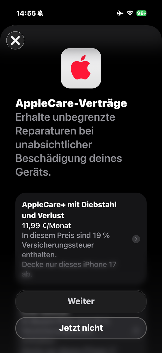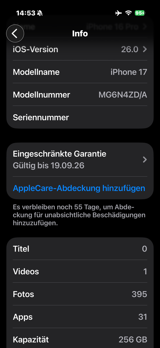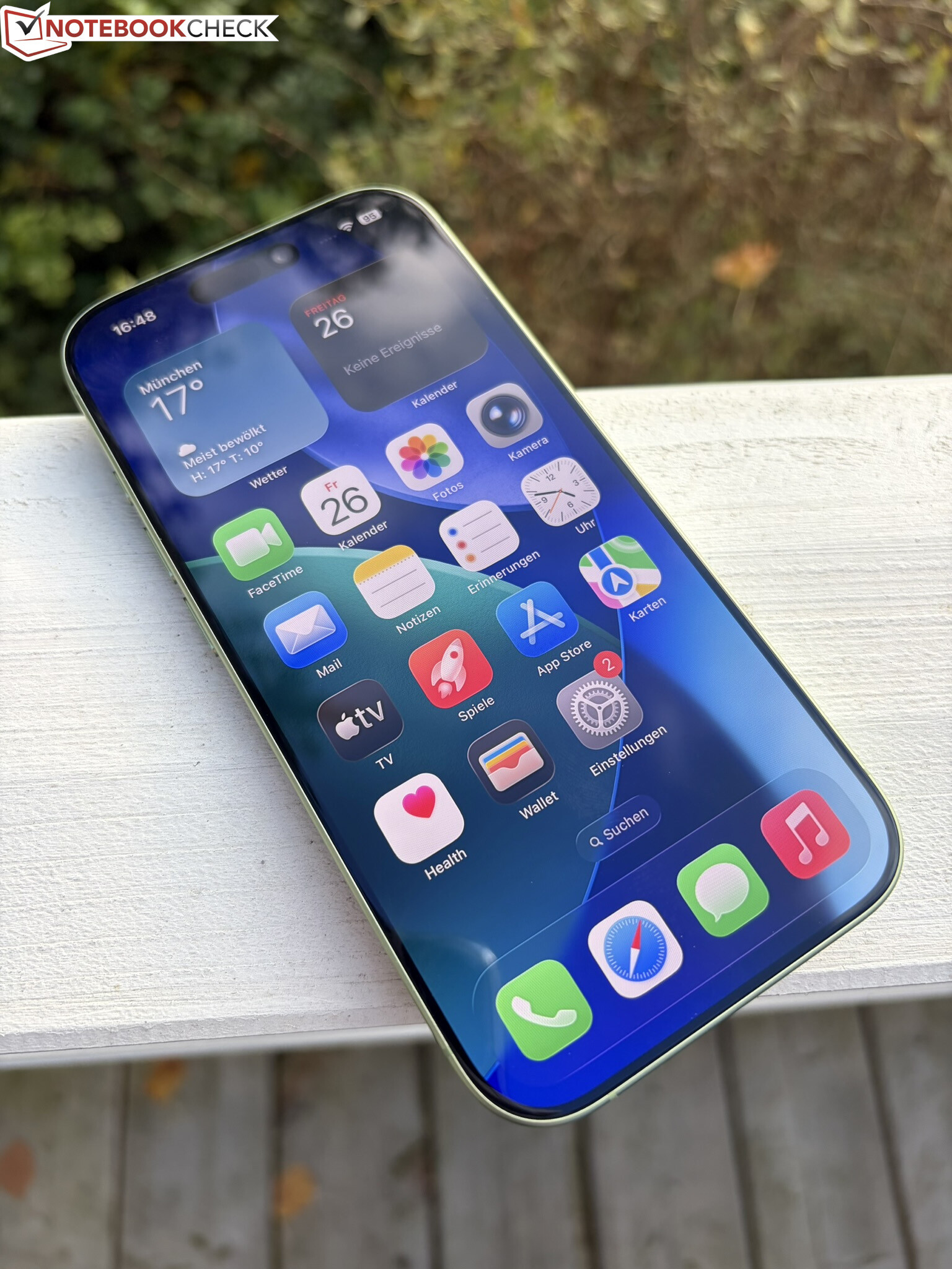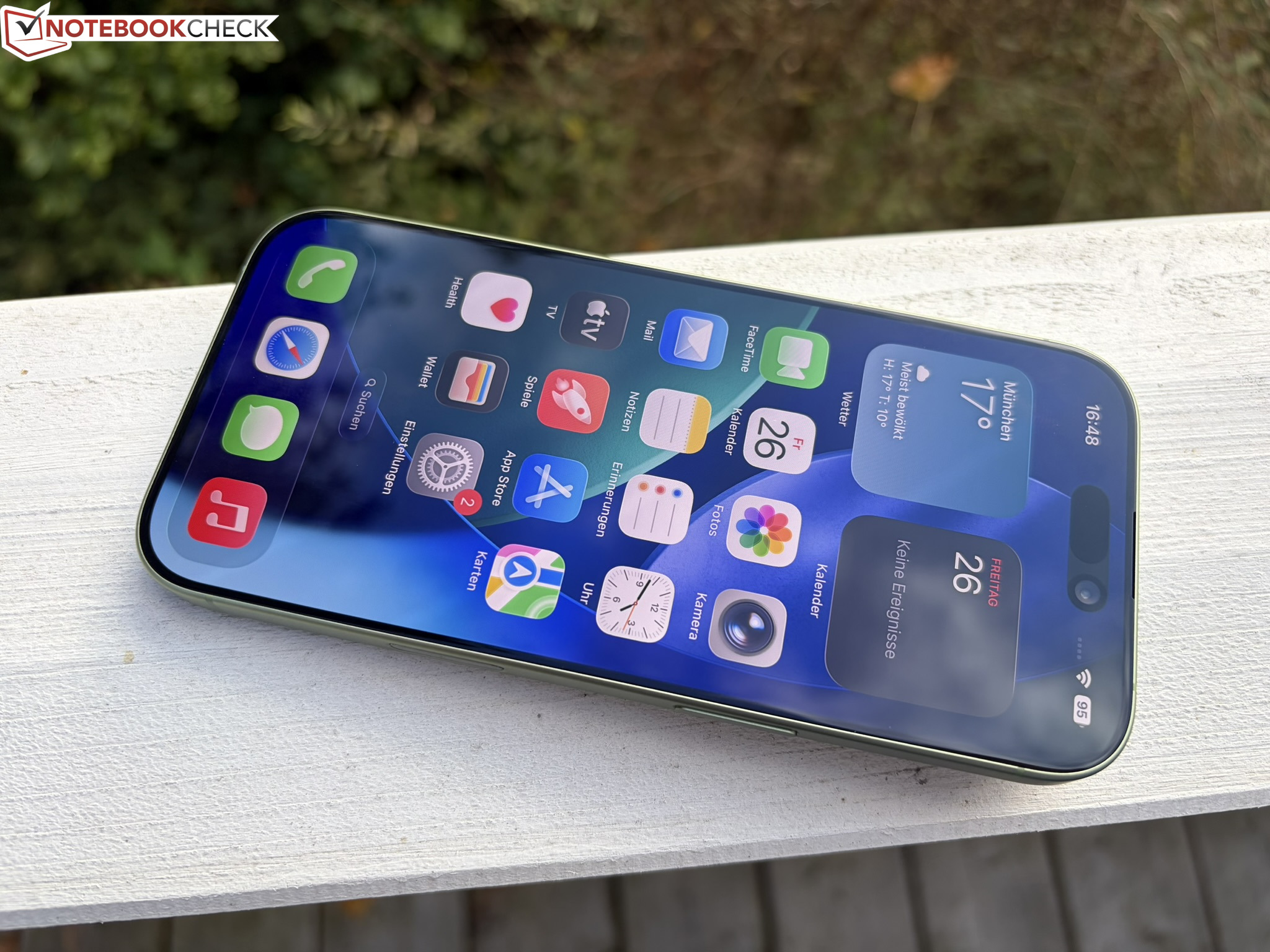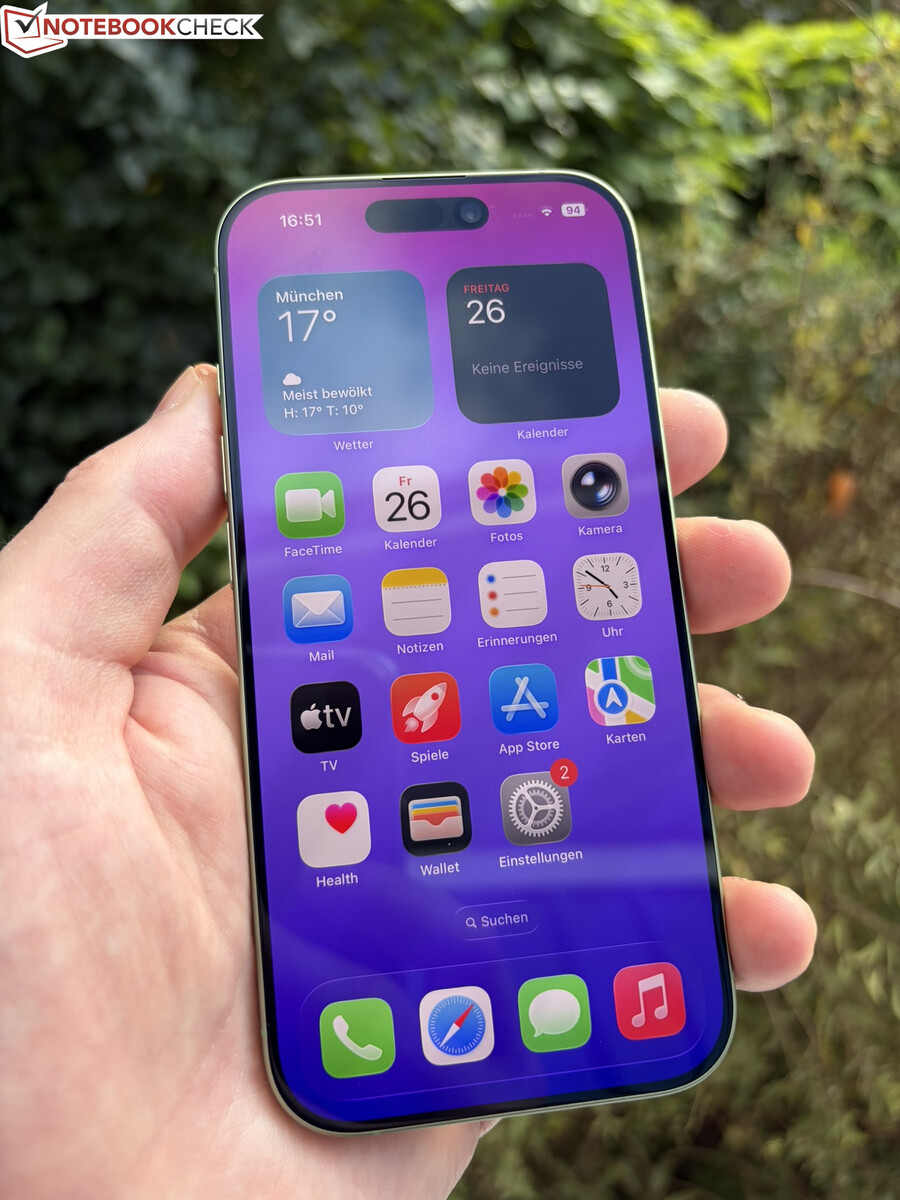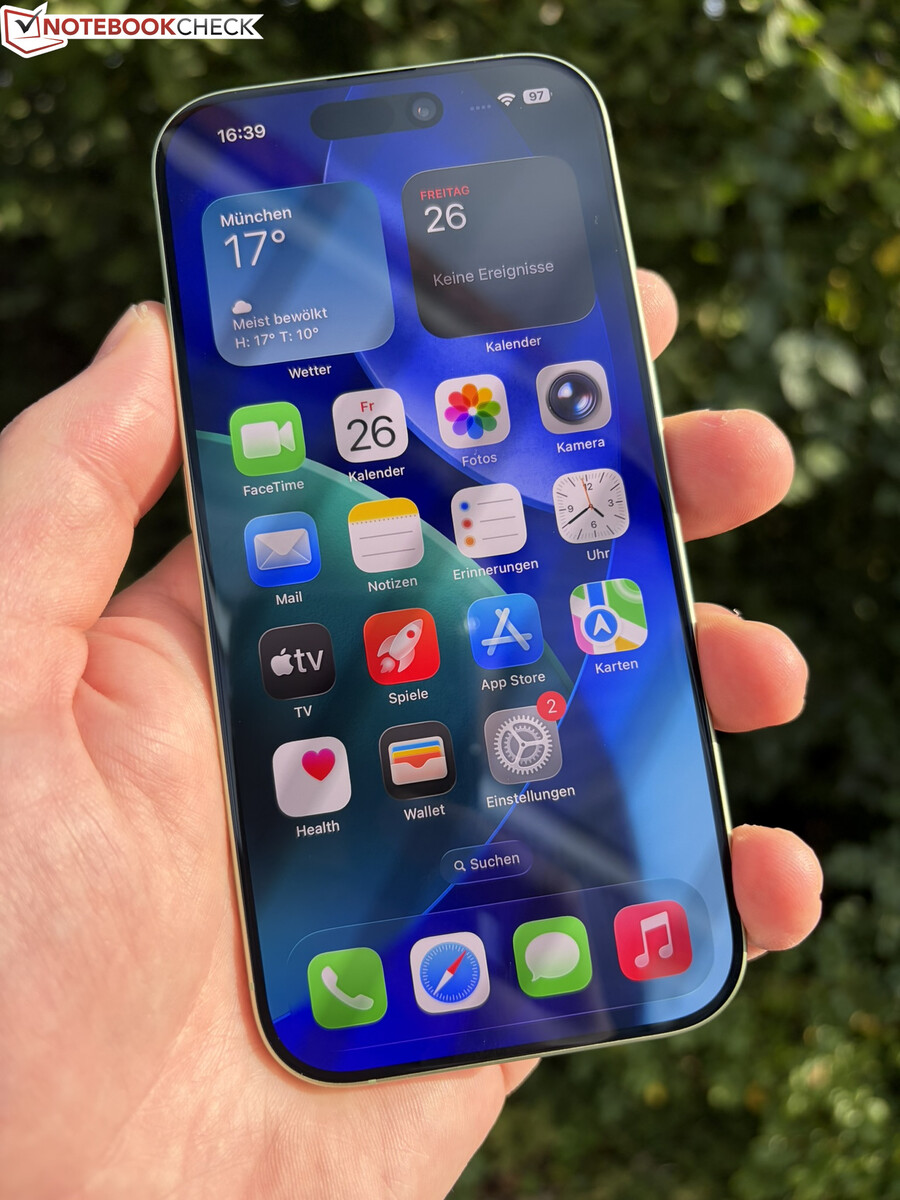 La configuración revisada también incluye una nueva cámara selfie "Center Stage". Tiene una resolución de 18 MP, se utiliza en todos los modelos iPhone 17, ofrece una calidad de imagen muy buena y utiliza un sensor cuadrado. Esto hace que resulte práctico tomar fotos y vídeos en formato apaisado incluso cuando el smartphone se mantiene en posición vertical.