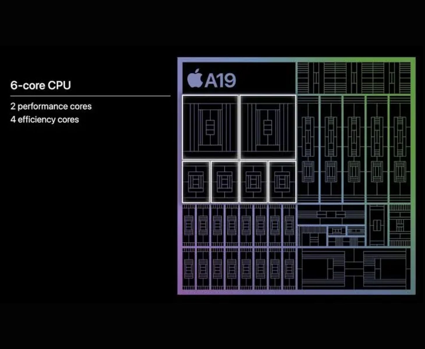 El procesador es el rumor más sorprendente. El iPhone 17e se espera que lleve el chip A19la misma generación que se encuentra en los modelos insignia de 2025 de Apple. Según los primeros desgloses técnicos, el A19 contiene mejoras arquitectónicas similares al A19 Pro, con sólo un núcleo de GPU menos.