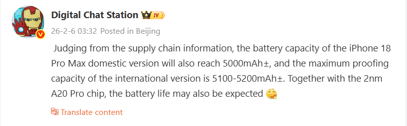 Basándose en información procedente de la cadena de suministro, el filtrador chino Digital Chat Station acaba de revelar, por primera vez, detalles bastante concretos sobre los tamaños de batería que Apple tiene previstos para el iPhone 18 Pro Max, que se espera para finales de este año. Así, habrá de nuevo dos modelos diferentes de iPhone 18 Pro Max: un modelo de solo eSIM con una capacidad de batería de unos 5.100 mAh a 5.200 mAh, y un modelo clásico con ranuras nano-SIM que albergará una batería de 5.000 mAh.