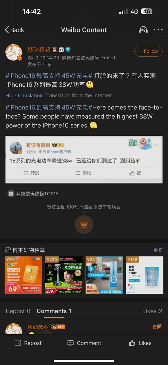 Apple el servicio de atención al cliente en China también ha confirmado aparentemente que los nuevos teléfonos admiten efectivamente un máximo de 45 W de carga, igualando efectivamente a Samsung en ese aspecto, con el S25 Ultra también está previsto a limitarse a 45 W de carga una vez más.