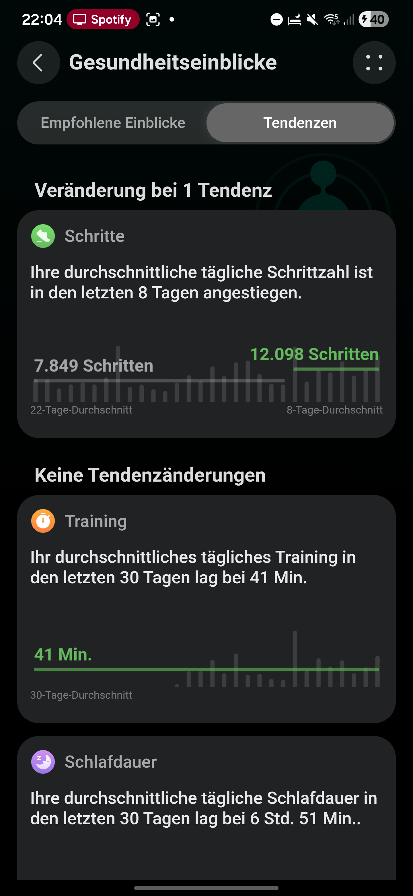 Las pruebas pueden iniciarse manualmente en el reloj colocando un dedo en el sensor X-Tap, y sólo tardan alrededor de un minuto. Más allá de las lecturas individuales, el software también proporciona Health Insights, destacando cambios y tendencias como una frecuencia cardiaca en reposo inusualmente alta.