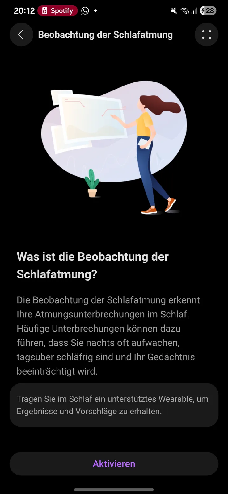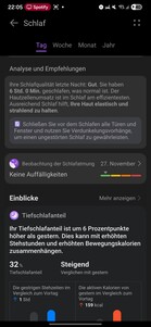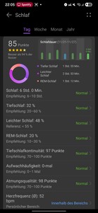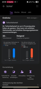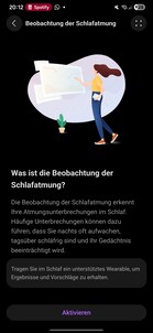 El reloj también realiza un seguimiento de la continuidad del sueño profundo, la calidad de la respiración, la frecuencia cardiaca, la saturación de oxígeno y la frecuencia respiratoria. Para detectar los sonidos del sueño es necesario tener cerca un teléfono inteligente emparejado. El sueño en general se califica mediante una puntuación y un sistema de estrellas, y el software proporciona análisis y recomendaciones para mejorar la calidad del sueño.