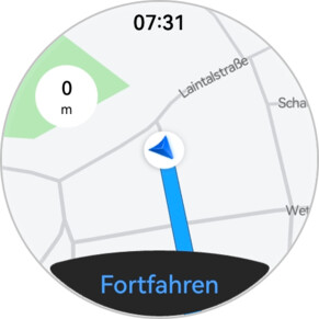Petal Maps viene preinstalado en el smartwatch, lo que permite la navegación en el reloj. La aplicación complementaria también debe instalarse en el smartphone emparejado. Dispone tanto de guía por flechas como de navegación por mapas.