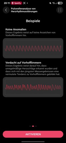 El software recopila las principales métricas de salud en informes Health Glance, como la frecuencia cardiaca media, la variabilidad de la frecuencia cardiaca, la saturación de oxígeno en sangre, la temperatura de la piel, los niveles de estrés, las tendencias emocionales, los resultados del ECG, el análisis de arritmias cardiacas, la rigidez arterial, una prueba de respiración y los datos de respiración durante el sueño.