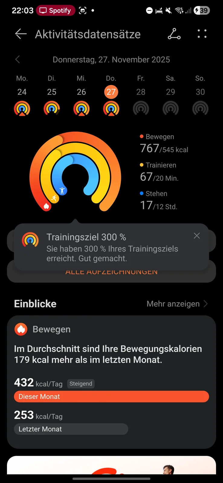 Nuestros resultados coinciden con las afirmaciones de Huawei. Sin eSIM, logramos cinco días de uso con la AoD desactivada y cuatro días con la AoD activada. Cuando el reloj se utiliza sin un teléfono inteligente emparejado y se lleva mucho durante las actividades deportivas, la duración de la batería disminuye en consecuencia.