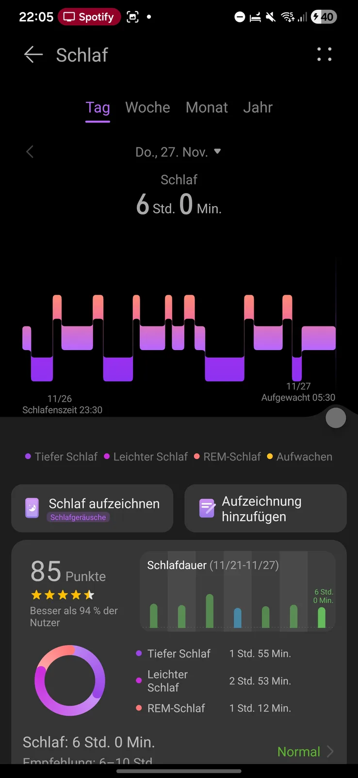 Seguimiento del sueño - Huawei con música para dormirse y recomendaciones para dormir