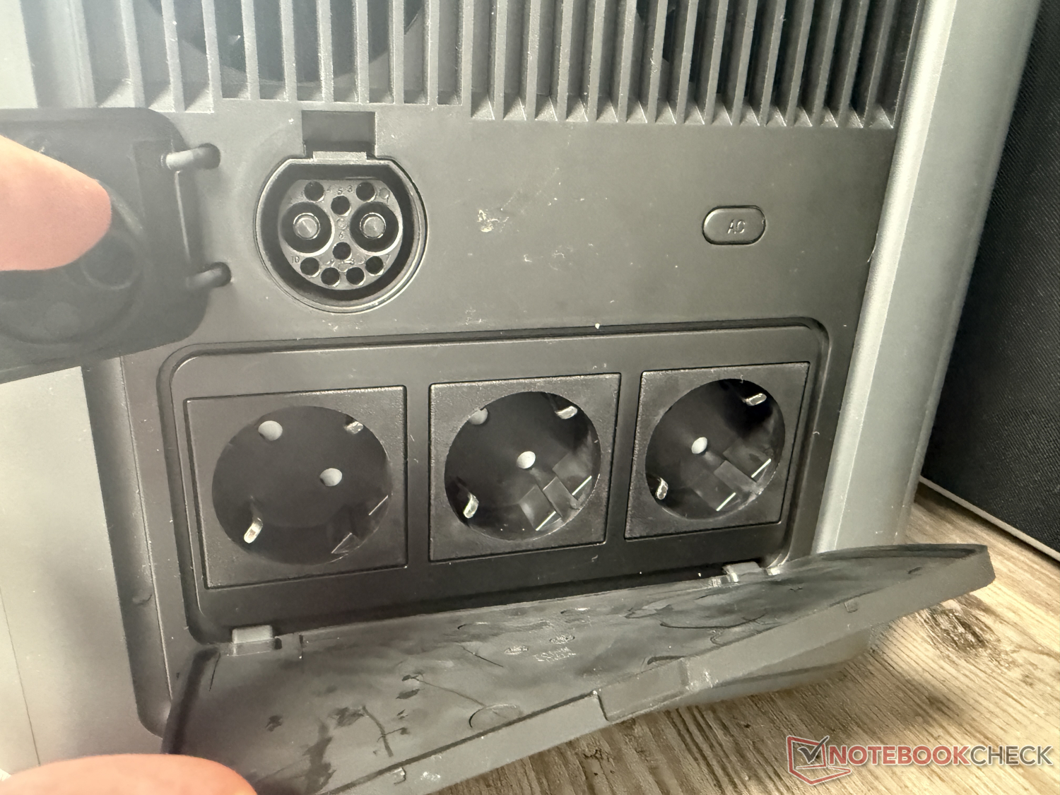 Aunque el tema de la aplicación es un desastre, el hardware en sí causa una impresión sólida. La mano de obra es decente. Resulta práctico que las conexiones de CA, por ejemplo, estén situadas en el lateral, detrás de una solapa de goma. Esto las protege contra las salpicaduras de agua, aunque la propia solapa dificulte algo el acceso a las tomas.