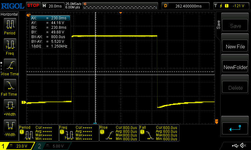 | 2 ms ... subida ↗ y bajada ↘ combinada | ↗ 1 ms subida | |