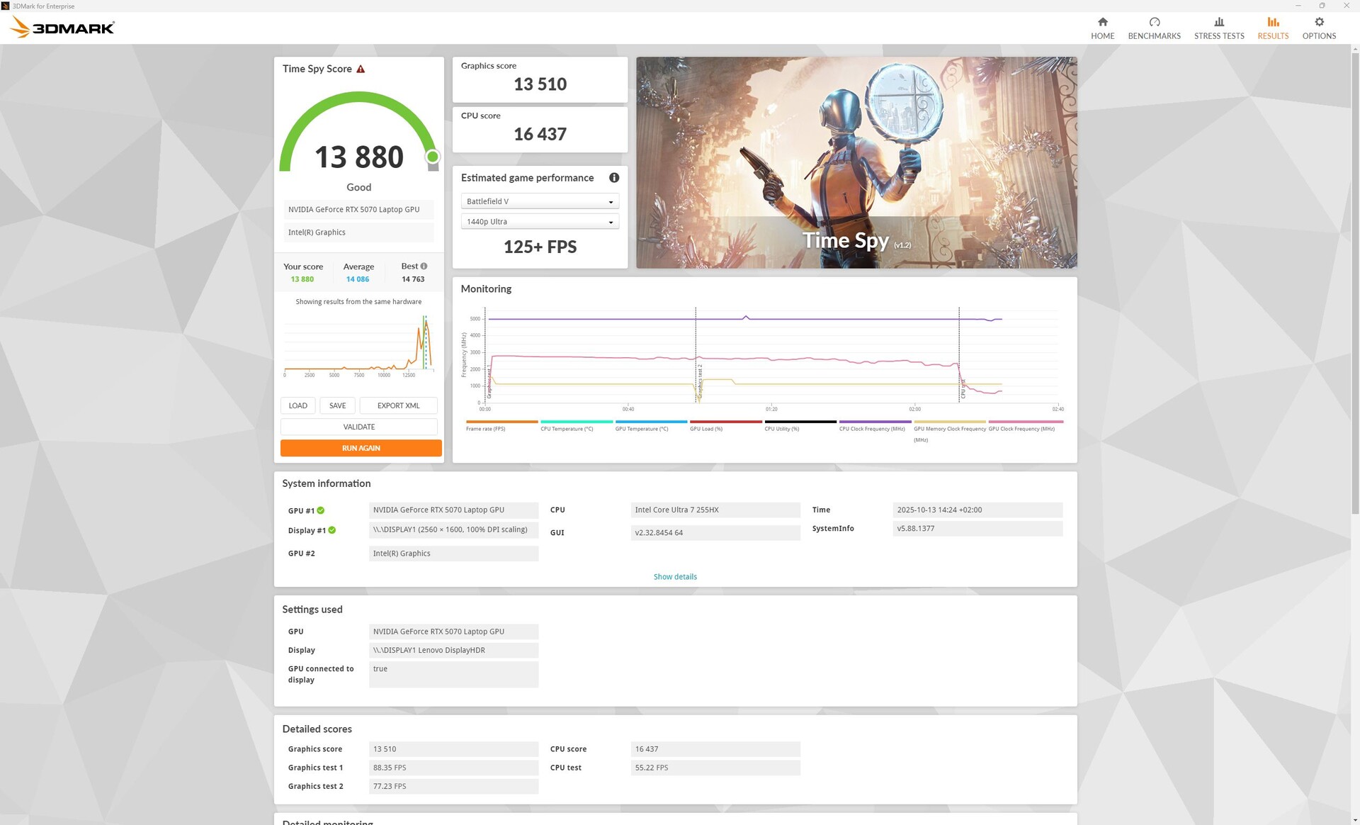 La Versión RTX 5070 Ti era uno de los portátiles más rápidos con esa GPU, y lo mismo puede decirse en gran medida del modelo RTX 5070 estándar, aunque la ventaja sobre sus rivales no es tan grande. El Aurora 16X de Alienware de Alienware consigue incluso superarla ligeramente.