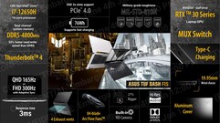 El TUF Dash F15 puede configurarse con la opción de un panel FHD 300 Hz o QHD 165 Hz con Adaptive Sync y un tiempo de respuesta de 3 ms. Asus ha dicho que ha mejorado la refrigeración del portátil a la vez que ofrece un touchpad un 27% más grande. Entrega de energía USB Type-C, Thunderbolt 4, una batería de 76 Whr y, por supuesto, la resistencia de nivel MIL-STD-810H por la que los dispositivos TUF son tradicionalmente conocidos.