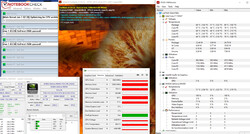 La CPU y la GPU pasan por nuestra prueba de esfuerzo (Prime95 y Furmark funcionando durante al menos una hora), que en su mayoría van de 600 a 1100 MHz o 550 a 600 MHz respectivamente. Sólo se alcanzan velocidades ligeramente superiores en los primeros segundos de nuestra prueba. La prueba de esfuerzo representa un escenario extremo, y usamos esta prueba para evaluar si el sistema sigue siendo estable bajo carga completa