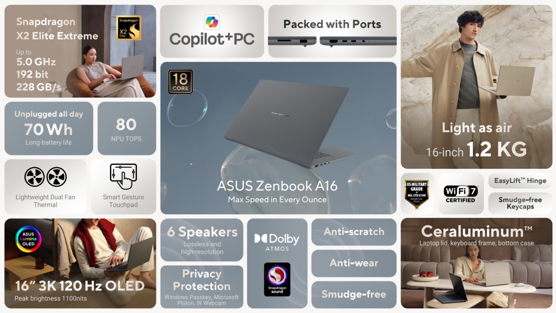Aunque la atención sigue centrada en el lanzamiento del portátil en EE.UU., Asus ha empezado a vender el Zenbook A16 también a nivel internacional. Por ejemplo, el portátil ya puede adquirirse en Australia, la zona euro y el Reino Unido. Actualmente, todas las variantes cuentan con un Snapdragon X2 Elite X2E-94-100 chipset, 48 GB de RAM y una unidad SSD de 1 TB.