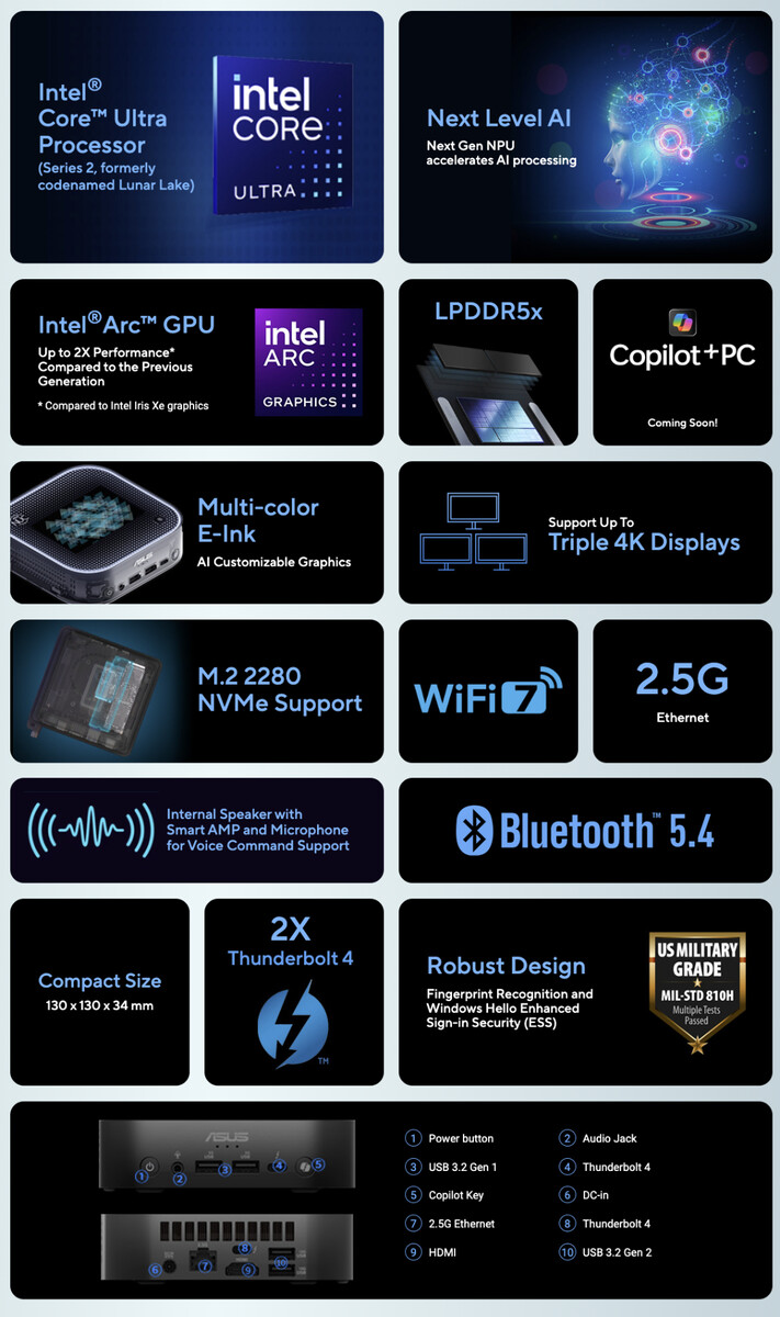 Además, el mini PC ofrece características como Bluetooth 5.4, Thunderbolt 4, Wi-Fi 7 y almacenamiento M.2 2280 NVMe. Por desgracia, Asus no ha confirmado cuándo estará disponible el NUC 14 Pro AI+, y mucho menos por cuánto. Consulte el sitio web de la empresa para más detalles.