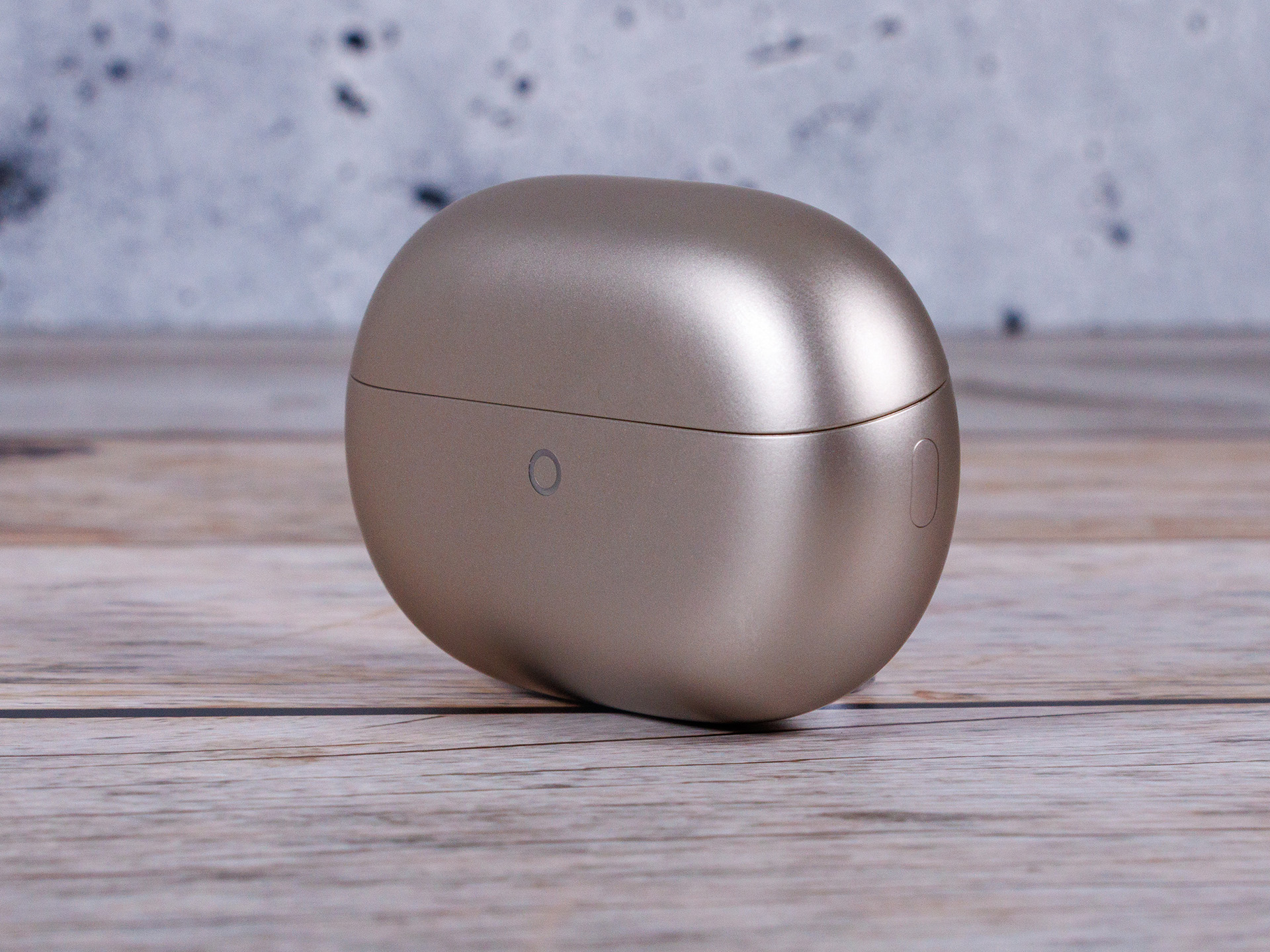 Los Huawei FreeBuds Pro 5 son ligeramente más compactos y redondeados que sus predecesores, y los auriculares pesan 0,3 gramos menos. El estuche de carga también es 4 gramos más ligero, a menos que opte por la versión azul, en cuyo caso sólo pesa 1 gramo menos. Las opciones de color incluyen blanco, negro, oro arena (nuestra unidad de revisión) y azul oscuro. En el caso de este último, la carcasa está recubierta de una capa de piel sintética texturizada.
