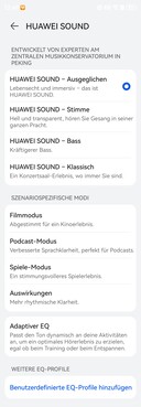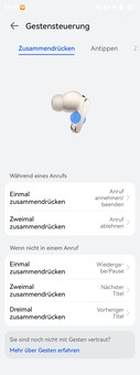 Sin embargo, la calidad del sonido también es excelente con LDAC y se ha mejorado notablemente, sobre todo en los graves y los medios. Huawei también ha introducido mejoras en la cancelación activa del ruido (ANC), que ahora suprime aún mejor el ruido ambiente, aunque no llega al nivel de los AirPods Pro 3 de Apple. El modo de transparencia es a la vez claro y silencioso y también se activa cuando se quita un auricular.