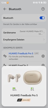 La configuración de los Huawei FreeBuds Pro 5 es sencilla a través del emparejamiento Bluetooth. Gracias a Microsoft Swift Pair, esto sucede automáticamente en los PC en cuanto se abre el estuche de carga por primera vez; lo mismo ocurre con los smartphones y las tabletas de Huawei. Dado que Google Fast Pair no es compatible, en este caso el proceso de emparejamiento debe iniciarse manualmente. Con la compatibilidad multipunto, se pueden emparejar dos dispositivos simultáneamente, y la lista de emparejamiento puede gestionar hasta ocho dispositivos.