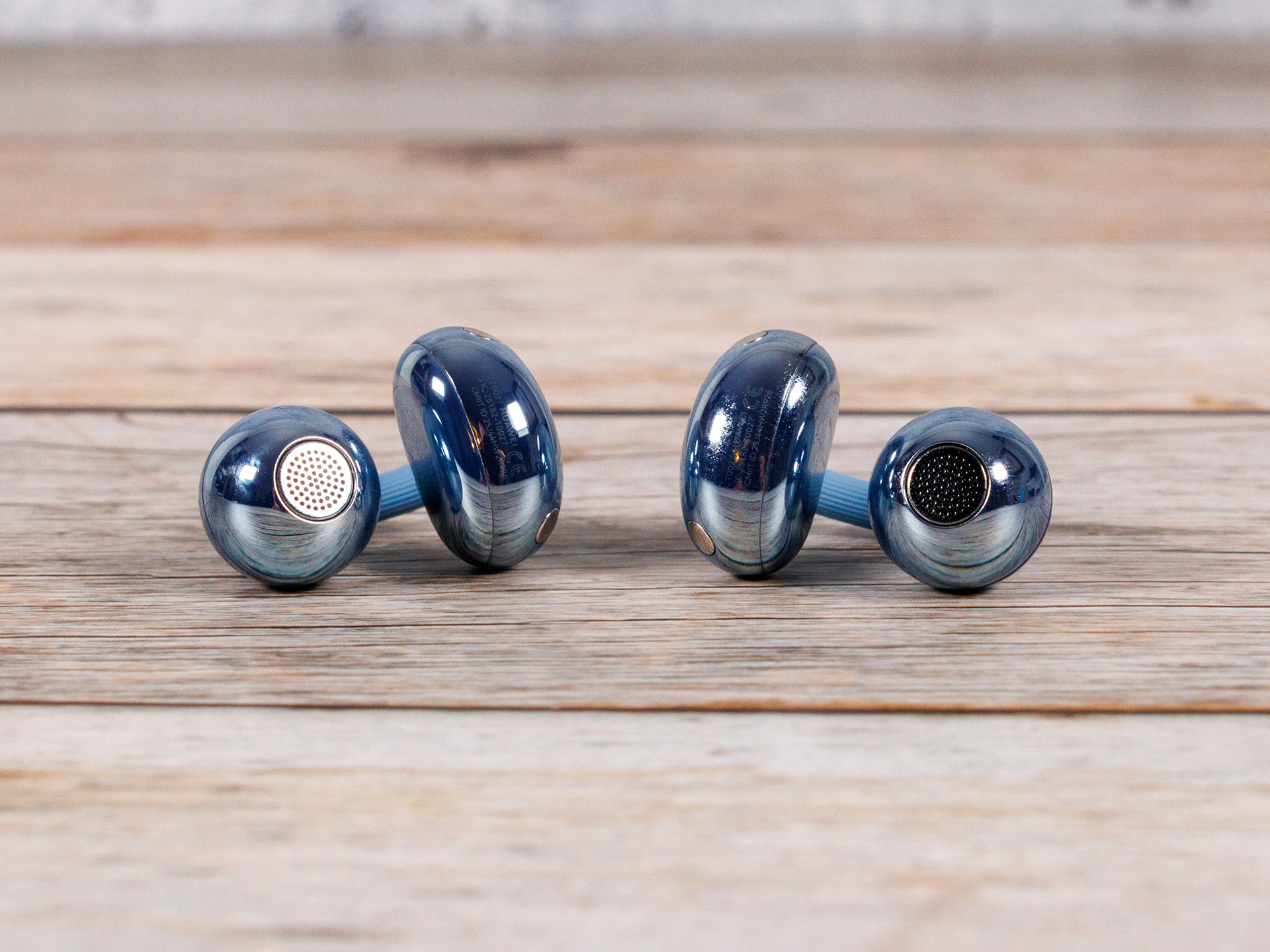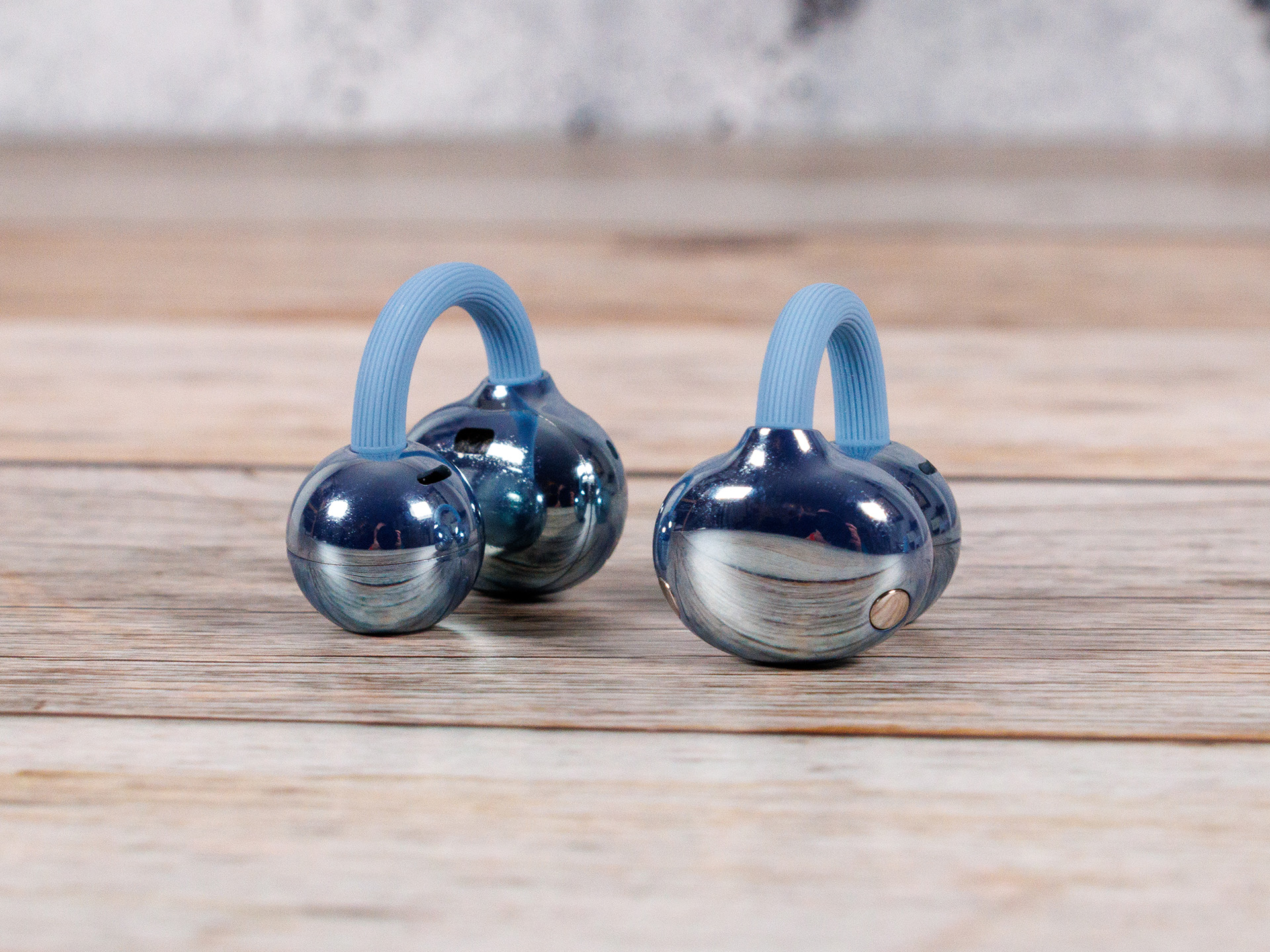 El puente en C conecta los otros dos elementos: el Comfort Bean y la Acoustic Ball. El primero alberga la pila y la superficie de control táctil, mientras que la segunda aloja los altavoces y los micrófonos. Los auriculares detectan automáticamente en qué oreja se llevan puestos.